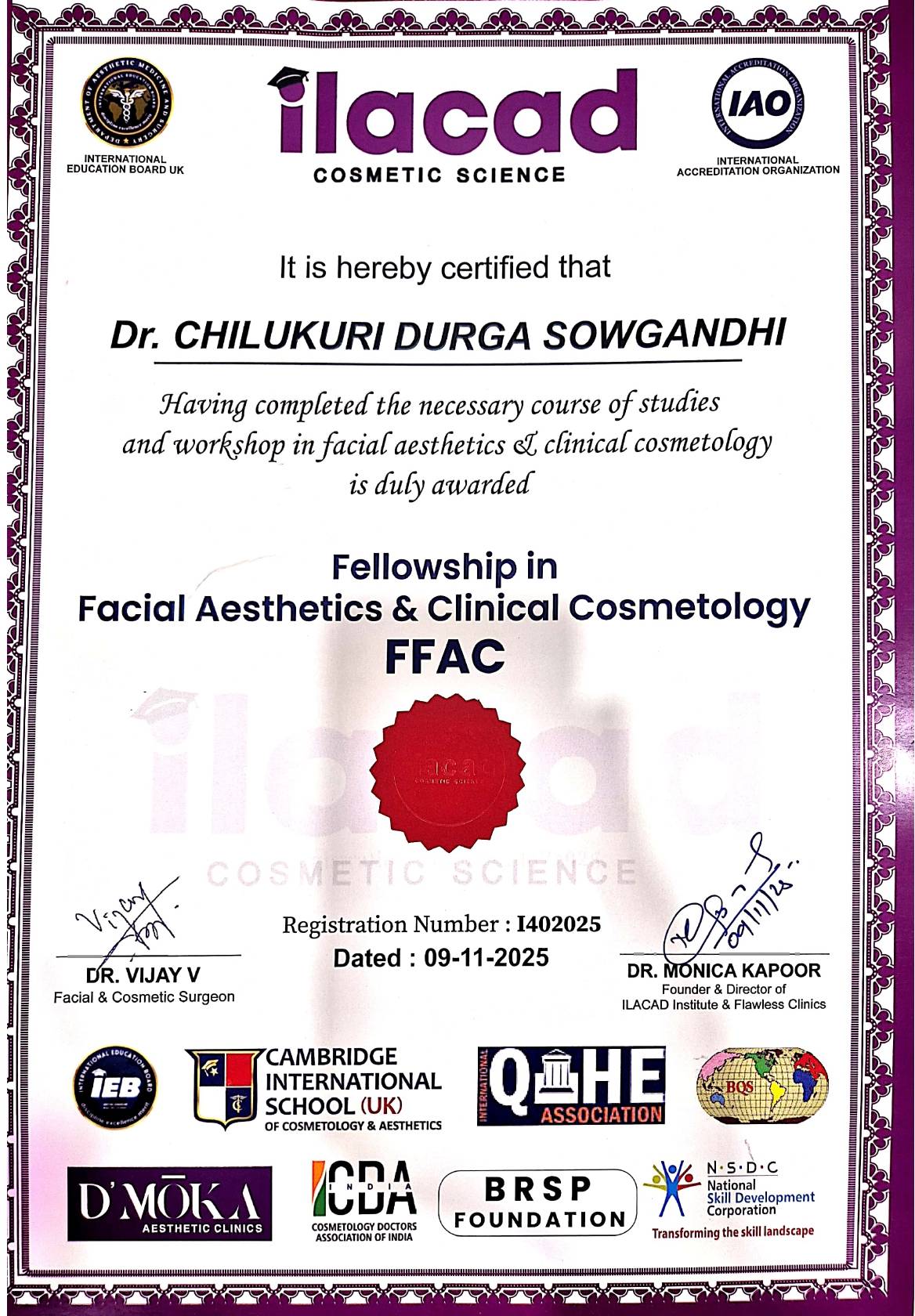 - Member of Indian Association Of Aesthetic Plastic Surgeons (IAAPS)