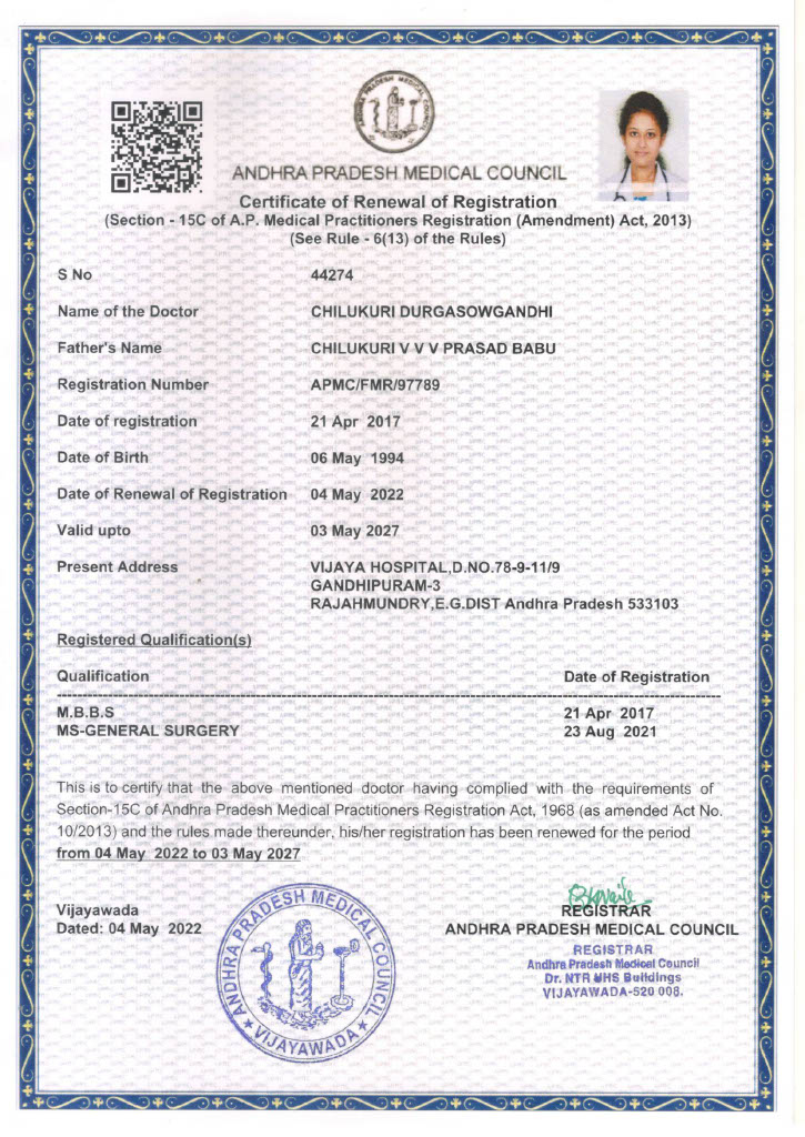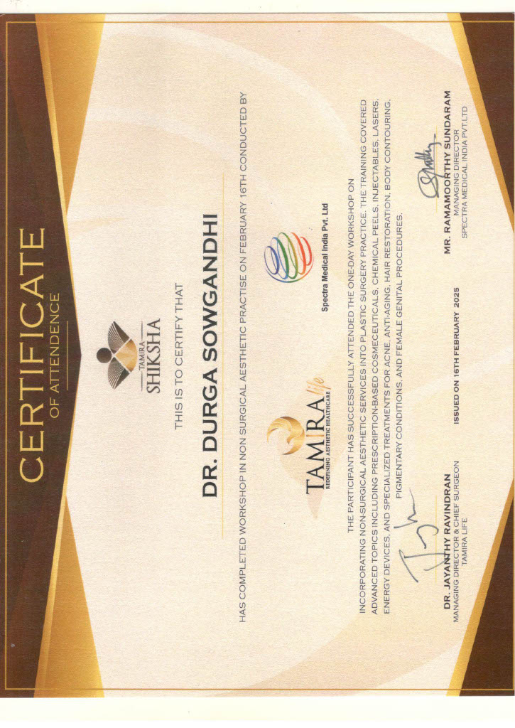 Dr. CH. Durga Sowgandhi is a certified Plastic, Reconstructive, and Aesthetic Surgeon with a passion for restoring confidence through precision and artistry. Having completed her MCh in Plastic Surgery from M.S. Ramaiah Medical College, Bangalore, she has gained extensive hands-on experience in Cosmetic, Plastic, Reconstructive, and Burn surgeries..