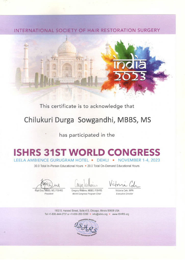 - Member of International Society Of Hair Restoration Surgery (ISHRS)