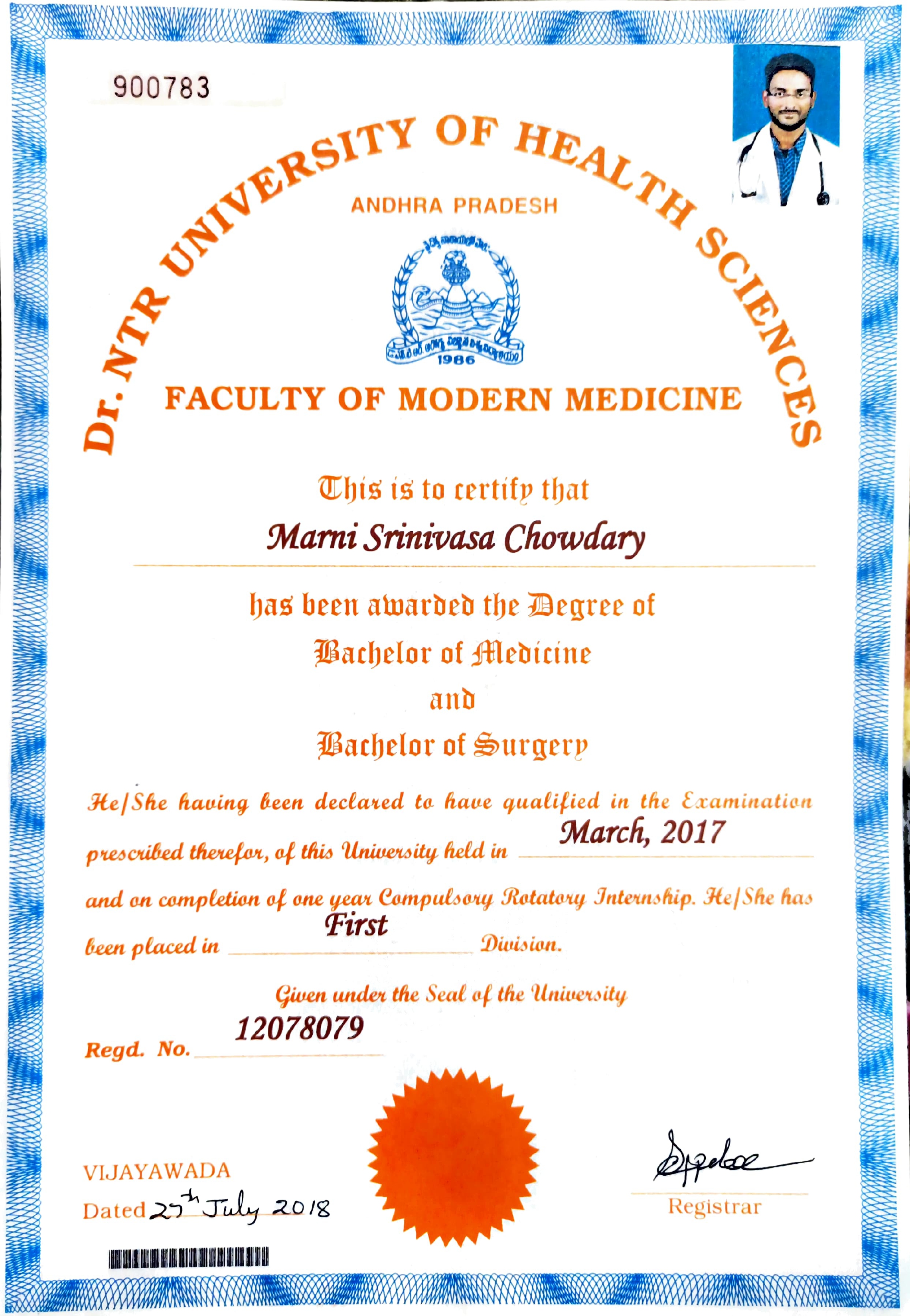 - Received “Late Sri Daka Lakshma Reddy & Govindamma''GOLD MEDAL” In MBBS